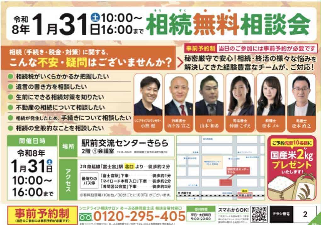 【2026年1月31日開催】相続無料相談会のお知らせ|富士宮駅すぐ