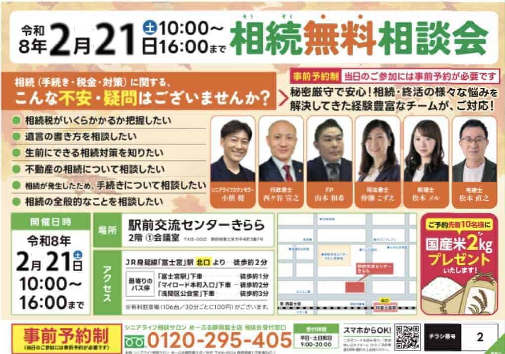 【2026年2月21日開催】相続無料相談会のお知らせ|富士宮駅すぐ
